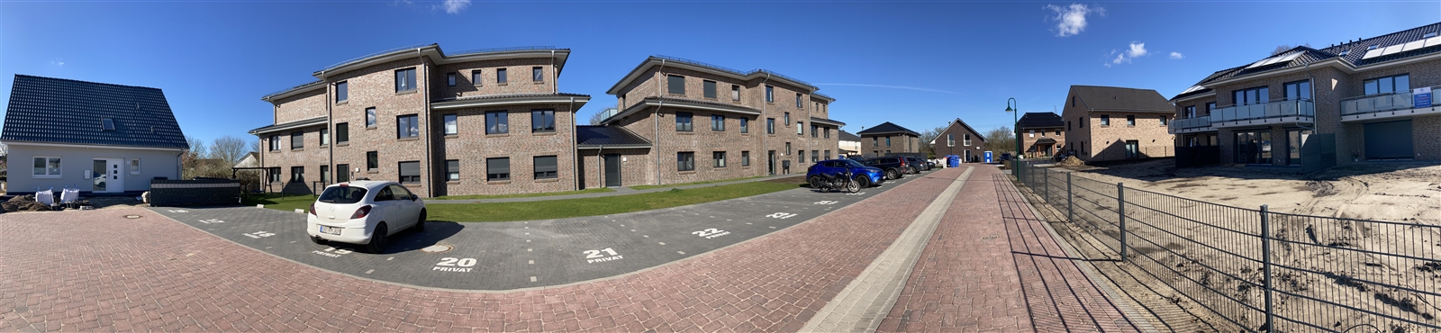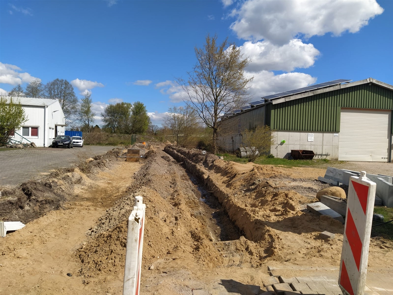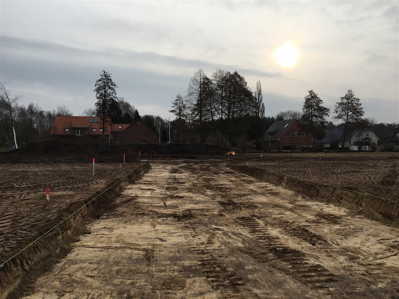 Erschließung war für uns, wie schon der Bebauungsplan eine neue Erfahrung. Glücklicherweise hatten wir mit dem zuständigen Ingenieurbüro Reese+Wulff einen kompetenten Partner, der uns in der Abstimmung mit der ausführenden Firma und dem Amt Geest und Marsch Südholstein stark unterstützt hat und uns half, so manche Klippe zu umschiffen. Im Laufe zweier Jahre verwandelte sich das, 2020 schließlich völlig zugewachsene und Verwahrloste Grundstück in ein kleines Neubaugebiet.