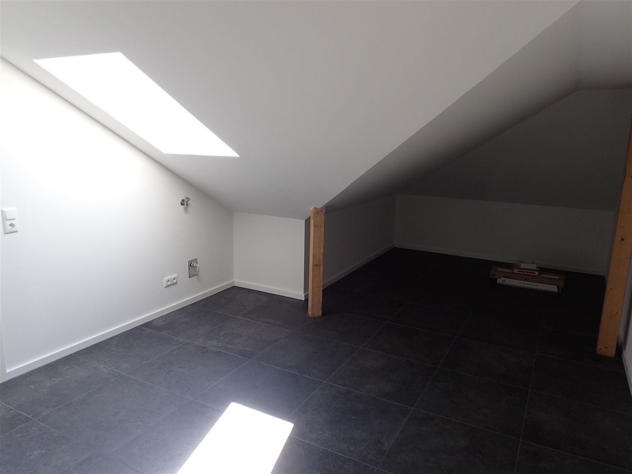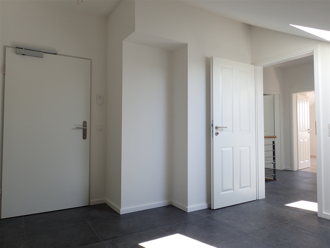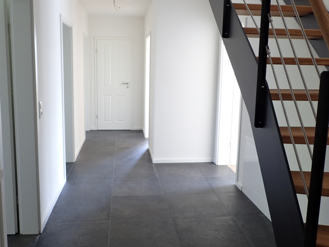 Der über eine moderne Treppe aus dem Flur erreichbare Dachgeschossbereich umfasst ein sehr geräumiges Zimmer mit Dachschrägen, einen gut nutzbaren Korridor sowie ein extra Badezimmer